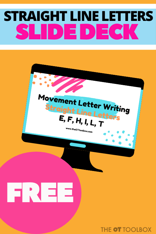 Are you a school-based OT looking for great ideas to use in teletherapy? Check out this FREE virtual therapy slide deck to help teach your students straight line letters from The OT Toolbox. #OTTipTuesday #OT #SchoolBasedOT #Teletherapy #Freebie